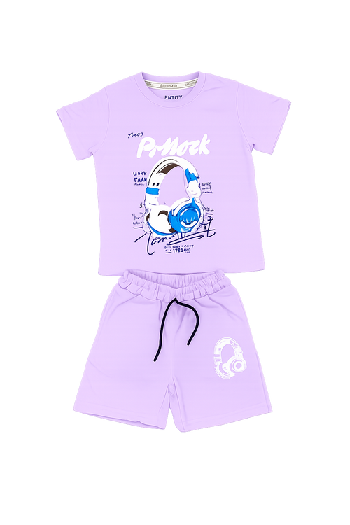 Boys Summer T-Shirt & Shorts Set – Purple Headphone Print Kids Outfit